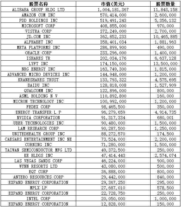 此外,Appaloosa客岁四季度还增执了81万份Kraneshares金瑞中证中国互联网ETF和80万份iShares安硕中国大盘股ETF。据统计,截止2024年年底,Appaloosa执有的中国股票及有关ETF市值在其投资组合中占比约37%。